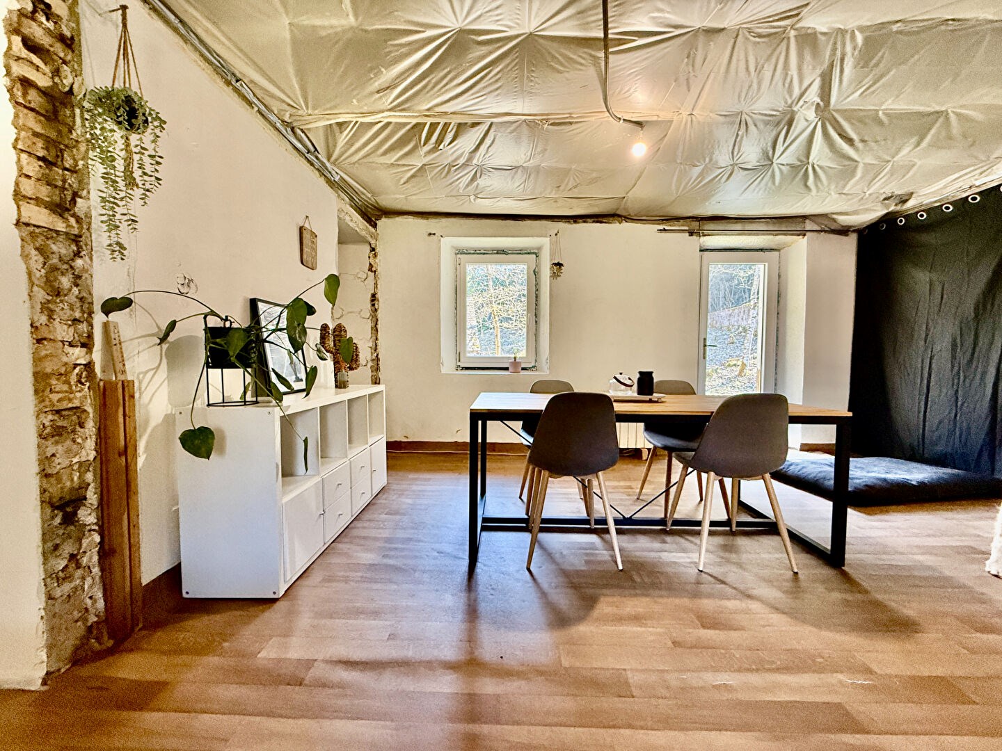 La toiture est neuve, constituant une base solide pour votre projet. Des travaux de rénovation sont à prévoir, mais une partie du matériel nécessaire est déjà sur place, facilitant le démarrage du chantier.