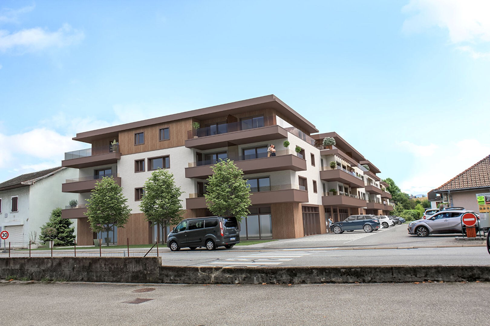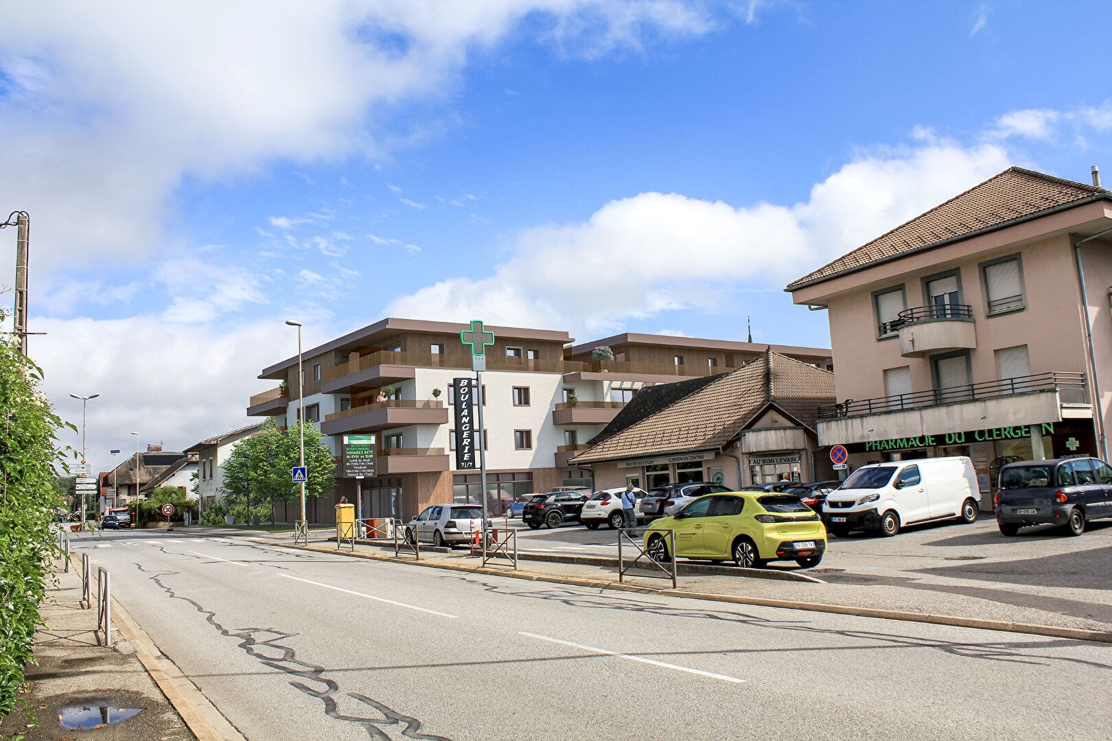 Dans un petit projet de 28 logements en 3 bâtiments, sans logements sociaux, avec ascenseur et des futurs commerces essentiels en pied d'immeuble,