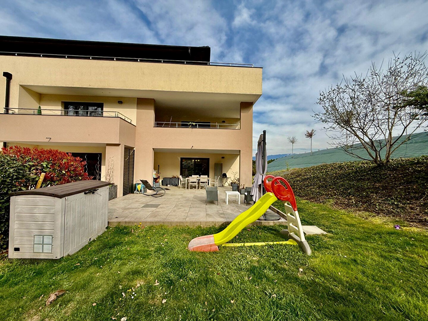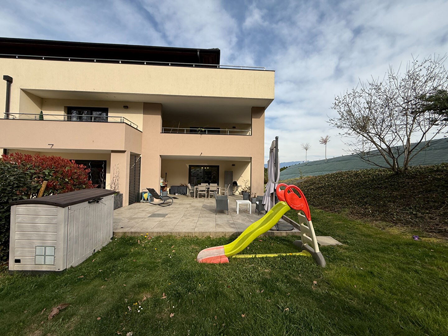 Niché sur les premières hauteurs de RUMILLY, au sein d'une copropriété de standing construite en 2017 ce vaste et bel appartement offre le compromis parfait entre maison et appartement !