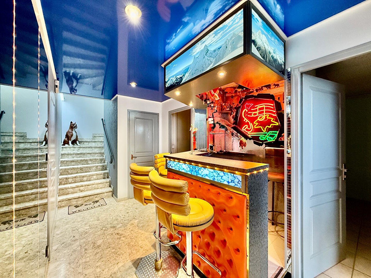 Le rez-de-chaussée accueille les pièces techniques et de loisirs : un coin bar convivial, un bureau, une buanderie/chaufferie, une cave et un grand garage double.